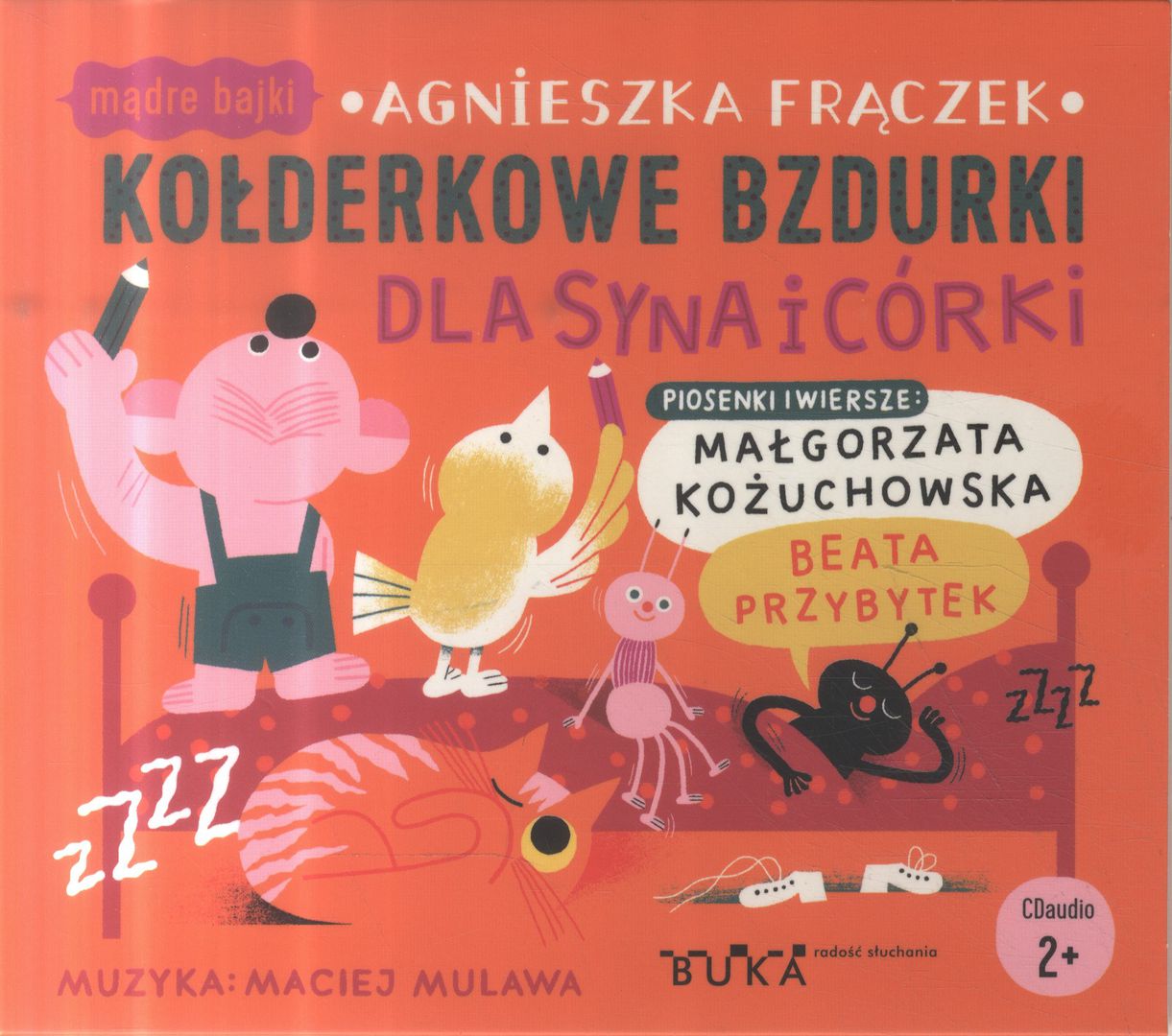 "Bo ja mam taką piżamkę, co niezłym bywa gałgankiem - z poduszką bawi się w berka, a z kołdrą tańczy oberka...". Mistrzyni słowa Agnieszka Frączek przenosi dzieci w zaczarowany świat sennych marzeń. Na płycie znajdziecie blisko 30 piosenek i wierszyków, a w nich "krótkie i długie, szare, tęczowe, drzemki, półsenki... I te zimowe - wielkie, puchate sny niedźwiadkowe...". W bajkową podróż Aleją Słodkiej Drzemki zabiorą dzieci dwie wybitne artystki - aktorka Małgorzata Kożuchowska i wokalistka jazzowa Beata Przybytek. „Kołderkowe bzdurki” to dziesiąty już audiobook wydany w cieszącej się ogromną popularnością serii Mądre bajki Wydawnictwa BUKA. Idealny do dziecięcego rymowania, śpiewania i spontanicznej zabawy.