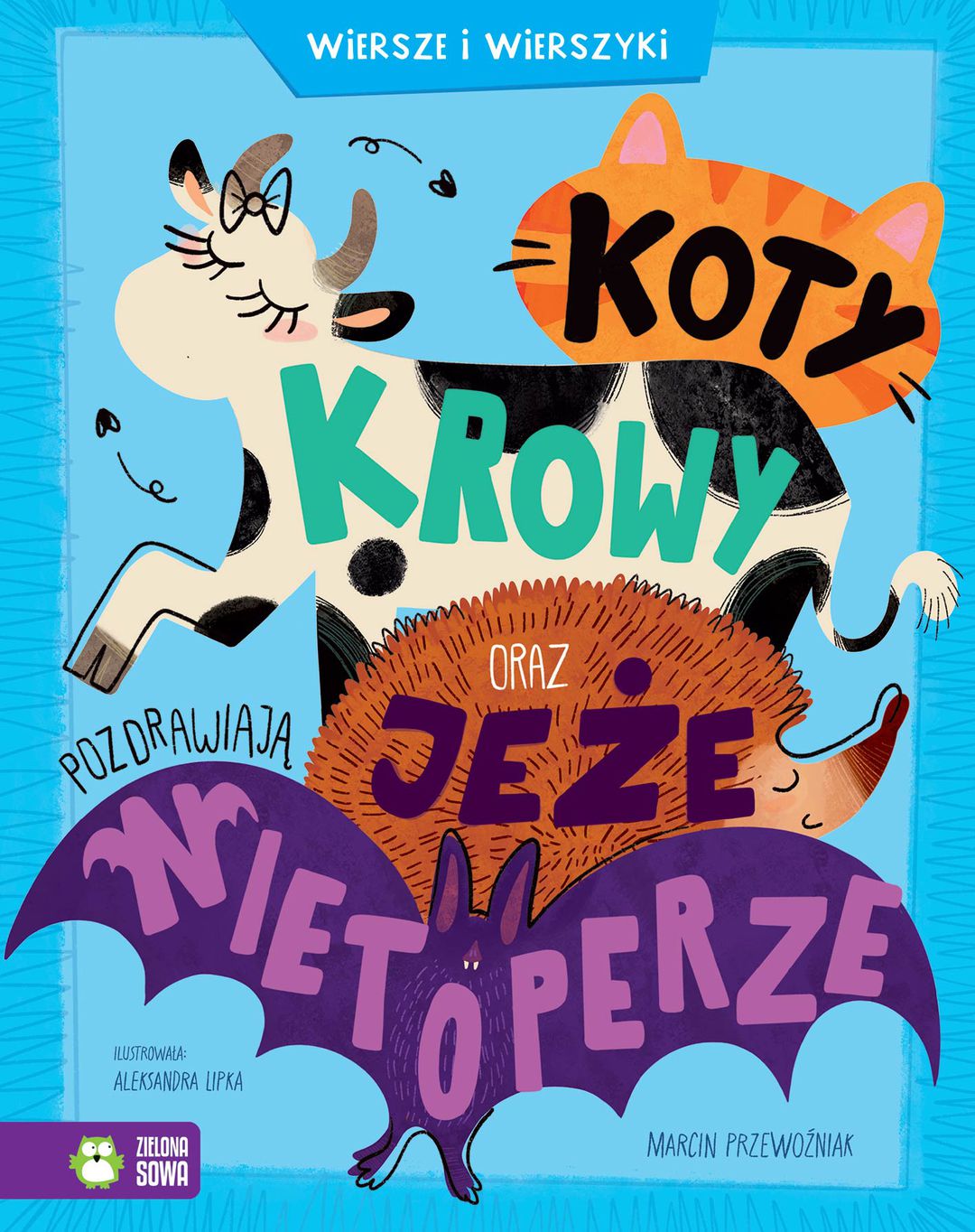 Koty, krowy oraz jeże pozdrawiają nietoperze / Marcin Przewoźniak ; ilustrowała Aleksandra Lipka. - Wydanie I. - Warszawa : Zielona Sowa, 2025. - 61, [3] strony : ilustracje kolorowe ; 22 cm.