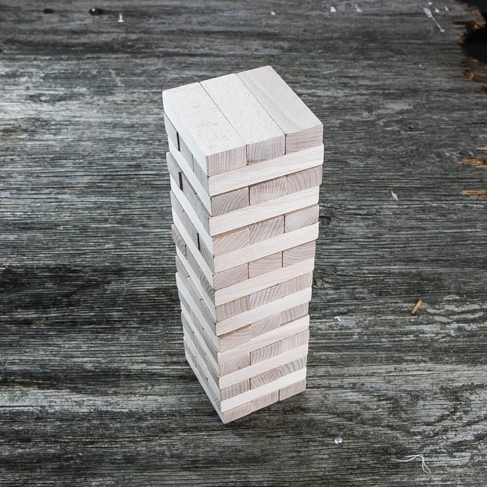 Wyciągnij jeden bloczek z dowolnej części wieży. Połóż go na szczycie. Jeśli wieża zawali się podczas Twojej tury, przegrywasz grę.