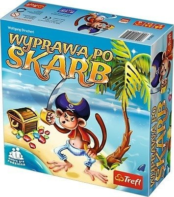 Wyprawa po skarb / Dirscherl Wolfgang. - Gdynia : Trefl, 2018. - Gra zawiera: 3 pionki postaci, 3 podstawki do pionków, 1 kostkę piracką, 1 kostkę do gry ; instrukcję.